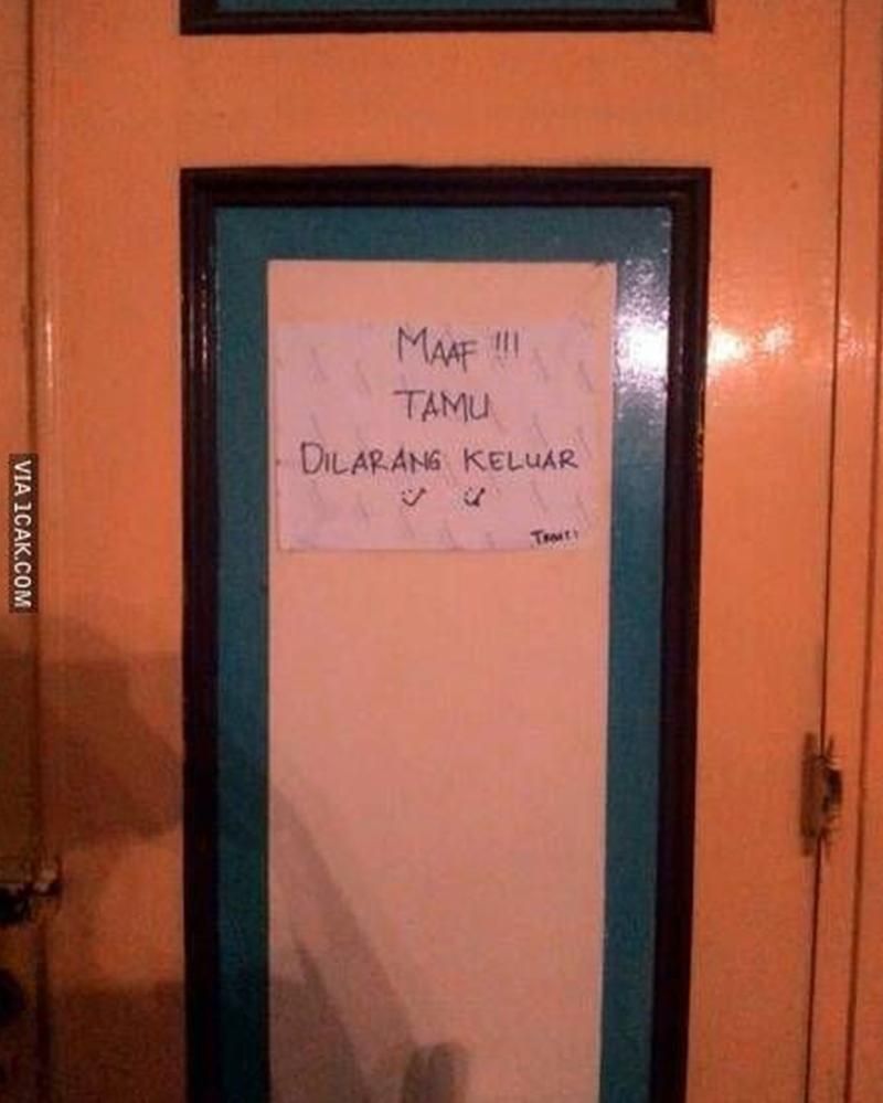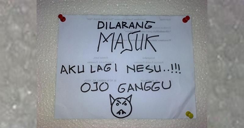 Tidak heran ada orang yang menempelkan tulisan ini sebagai peringatan di luar kamar. Jika menemukan tulisan ini, segera tinggalkan tempat tersebut!