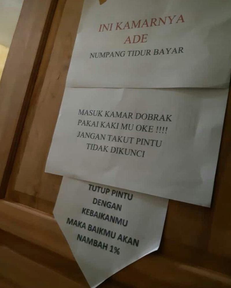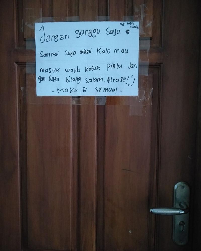 Berikut adalah 12 foto lucu tulisan di pintu kamar yang mampu membuat siapa saja tertawa. Semoga tulisan-tulisan ini bisa memberi hiburan, Ma.