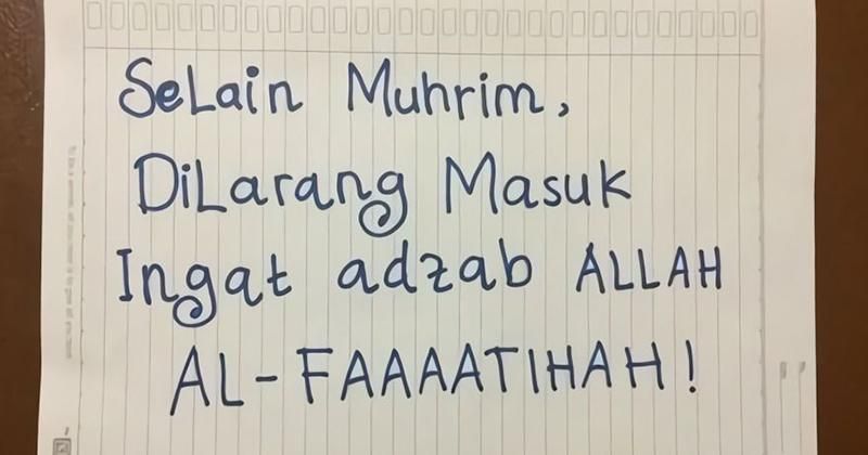 Untuk menghindari hal tersebut dan hal-hal lainnya, pemilik kamar memasang peringatan di depan pintunya. Ia juga menambahkan peringatan mengenai azab Allah.