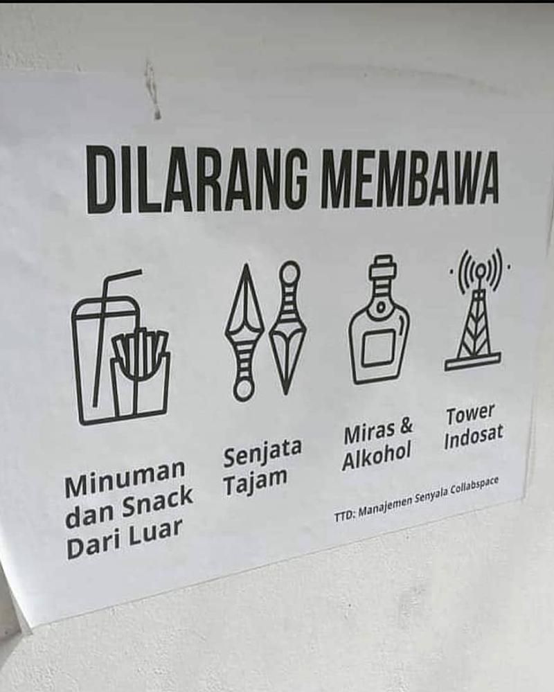 Dikatakan bahwa dilarang membawa makanan dan minuman dari luar, senjata tajam, minuman beralkohol serta alkohol. Namun, ada sesuatu yang tidak biasa dari aturan ini, Ma!