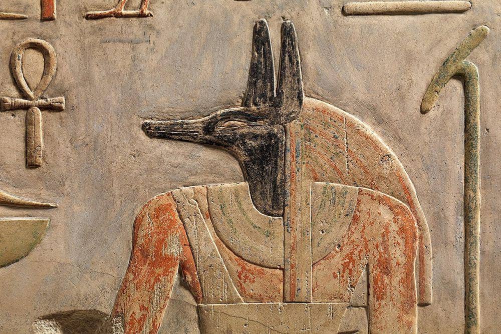 Salah satu yang paling terkenal adalah Anubis, yang memiliki wajah anjing gurun atau serigala. Ia bertugas sebagai penjaga dunia arwah, pengawas proses pembuatan mumi, serta pelindung jiwa yang telah meninggal. Bentuknya sering digambarkan pada peti mati dan gulungan kematian.