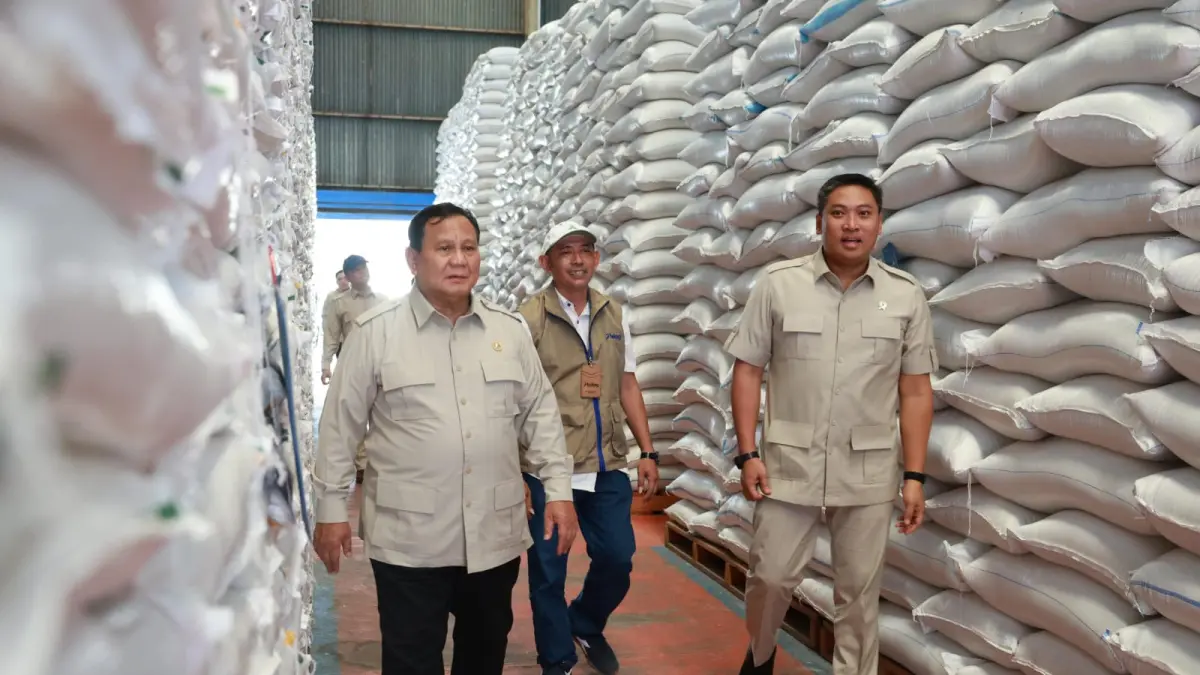 Saat tiba di lokasi, Prabowo mengunjungi kondisi persediaan pangan nasional. Prabowo berharap memastikan cadangan beras dalam keadaan aman dan siap didistribusikan kepada rakyat.
